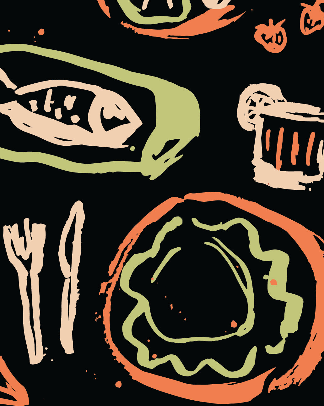 The colour palette fits perfectly with a warm orange, leafy green and soft neutral. The gin itself is just as beautiful, infused with mandarin, sage and prickly ash. Bright, bold, and a little zesty. Basically like my art!