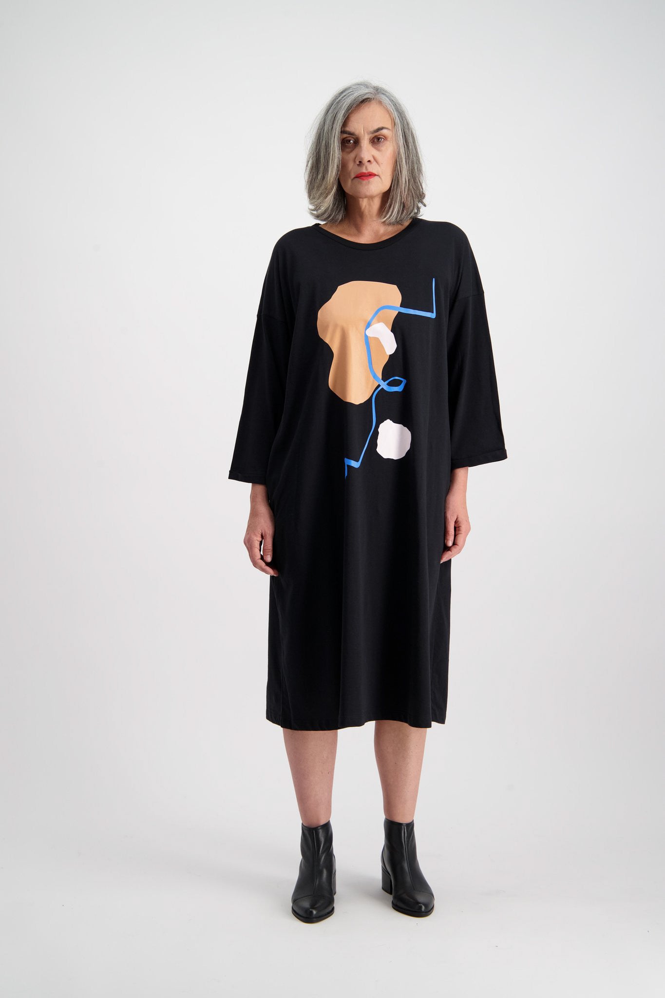 The final print design is organic and playful. And can we talk about how good that dress is! Super soft cotton jersey with an epic sleeve situation. Oh and it has pockets! Take my money.