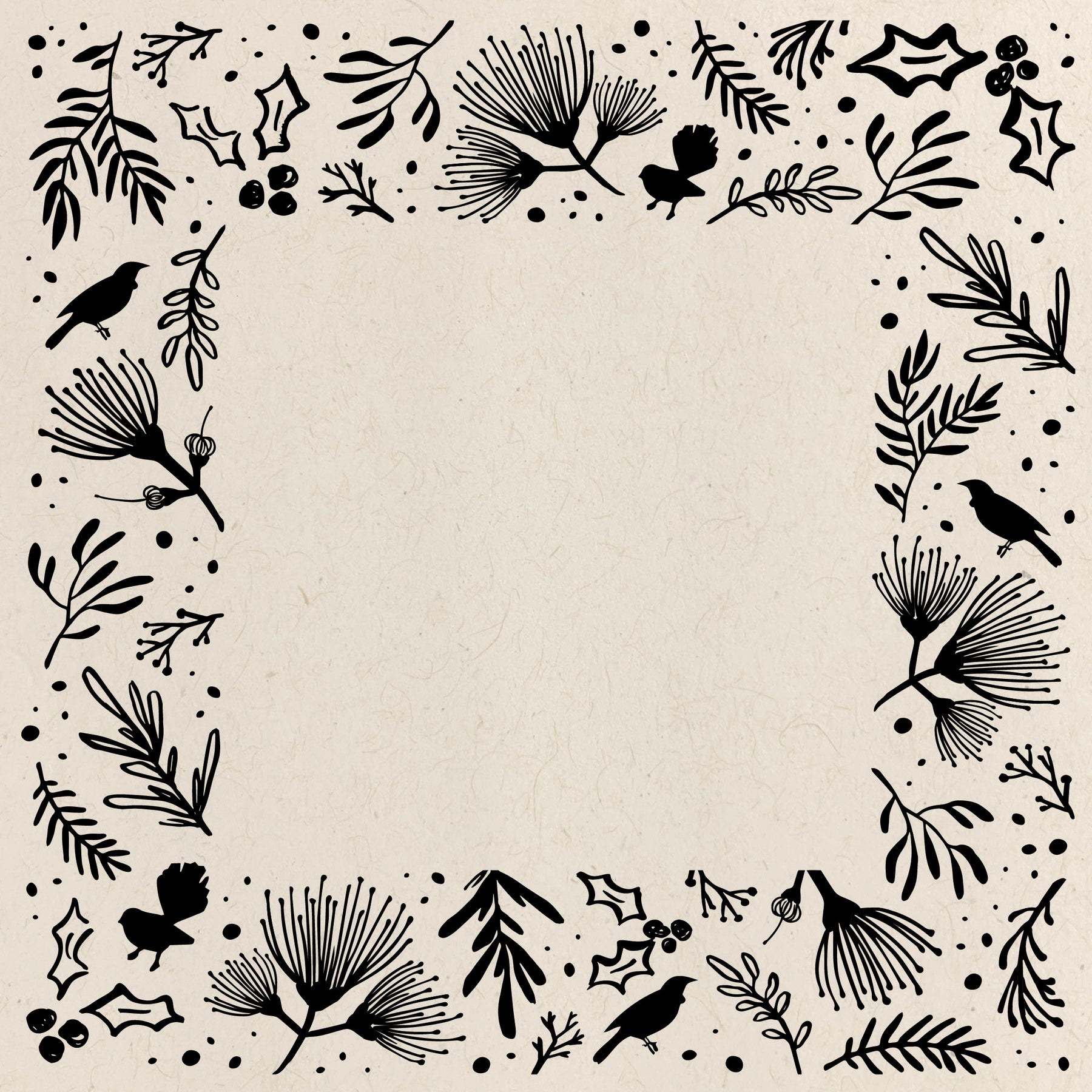 This Christmas window art will frame your windows with Pōhutukawa, Pīwakawaka, Tūi, plus a whole lot of foliage. This border design outlines your shopfront without blocking the view and cluttering the centre of the window.