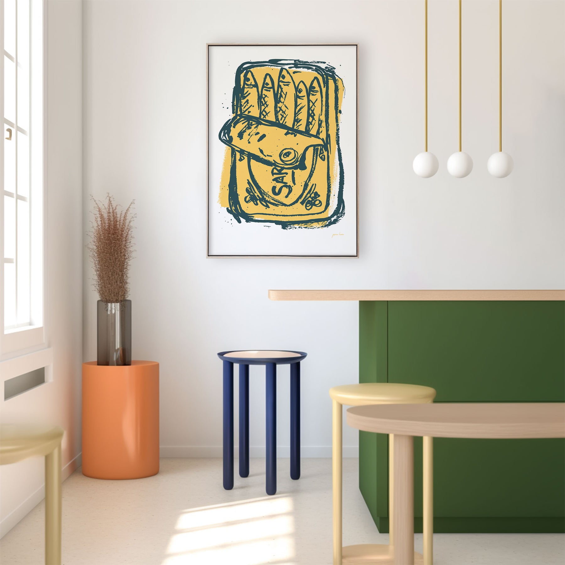 This print is a burst of creativity, and a dash of childhood memories. Hang it in your space, and let the sardines' add a playful touch to your walls. 🎨