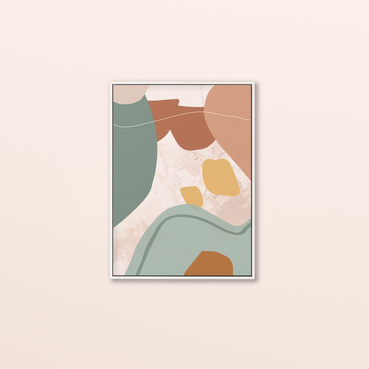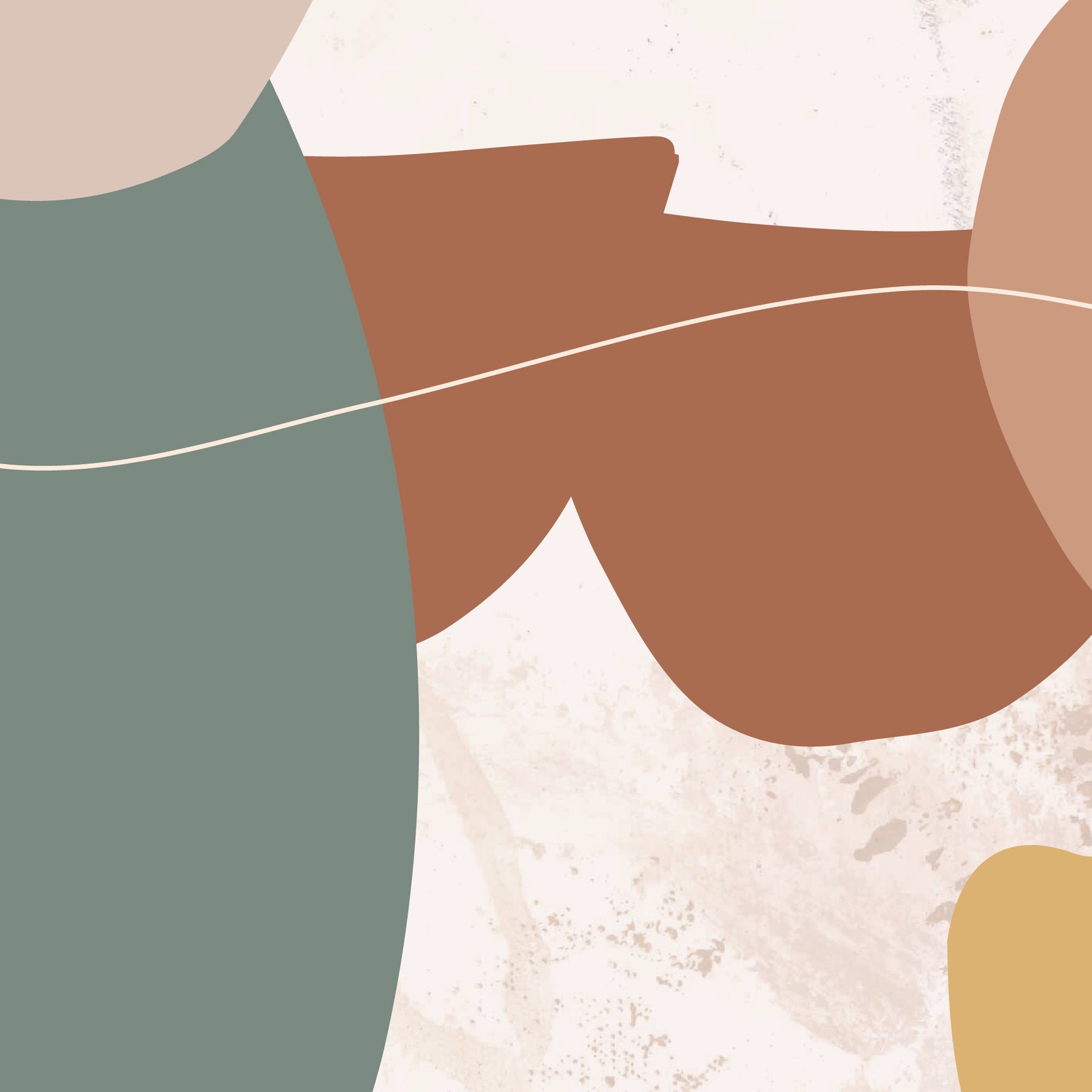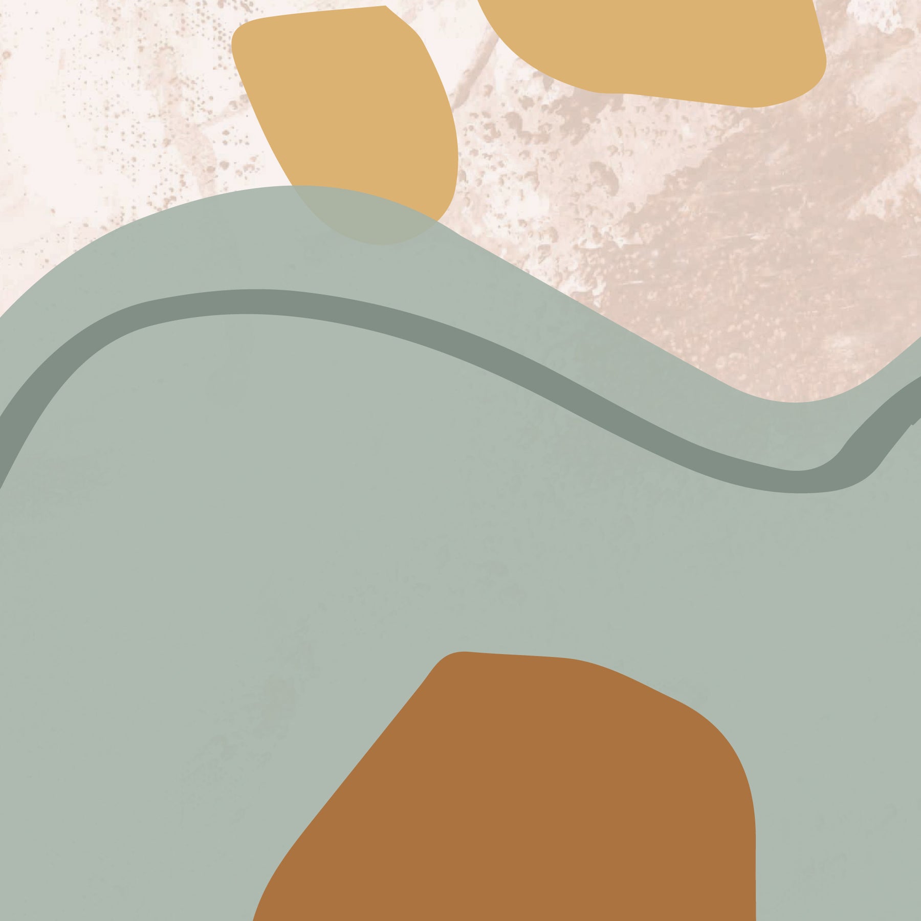 Cool blue tones are contrasted by warm rust and lemon yellow in this abstract composition.