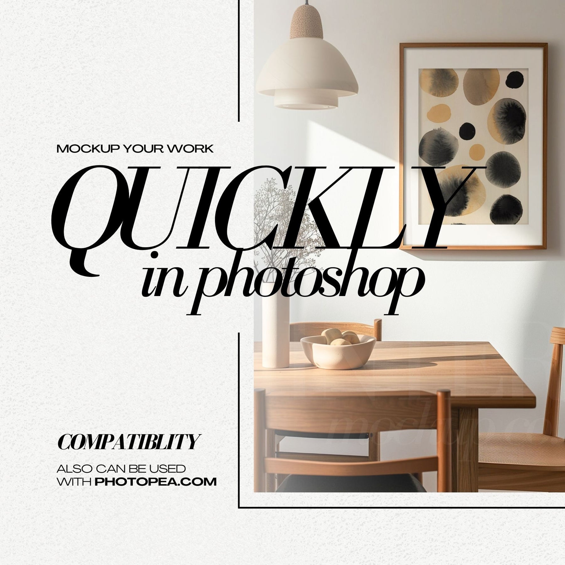 DIN A2 Frame Mockup PSD Vertical Wooden Frames for Art Print, Modern Dining Room Interior