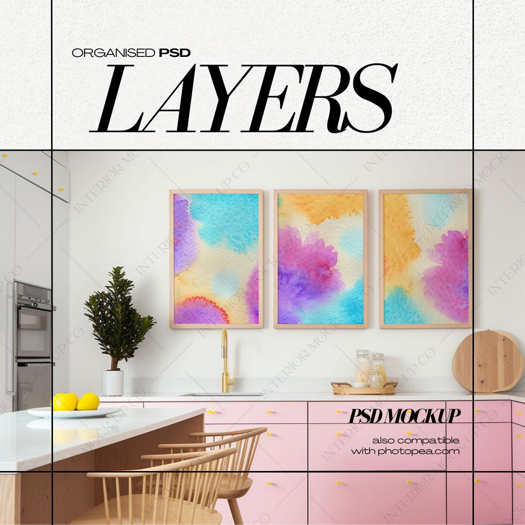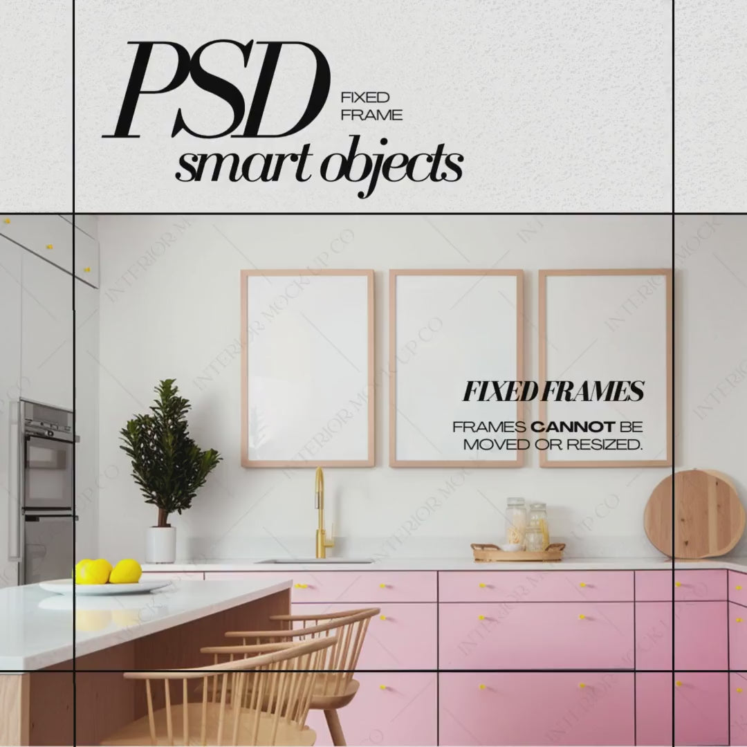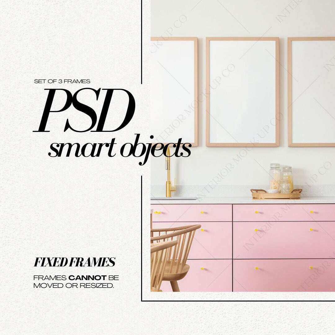 Pink Set of 3 Frames Mockup - Colorful Kitchen