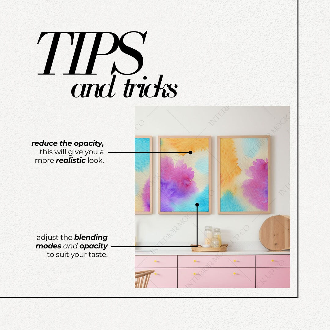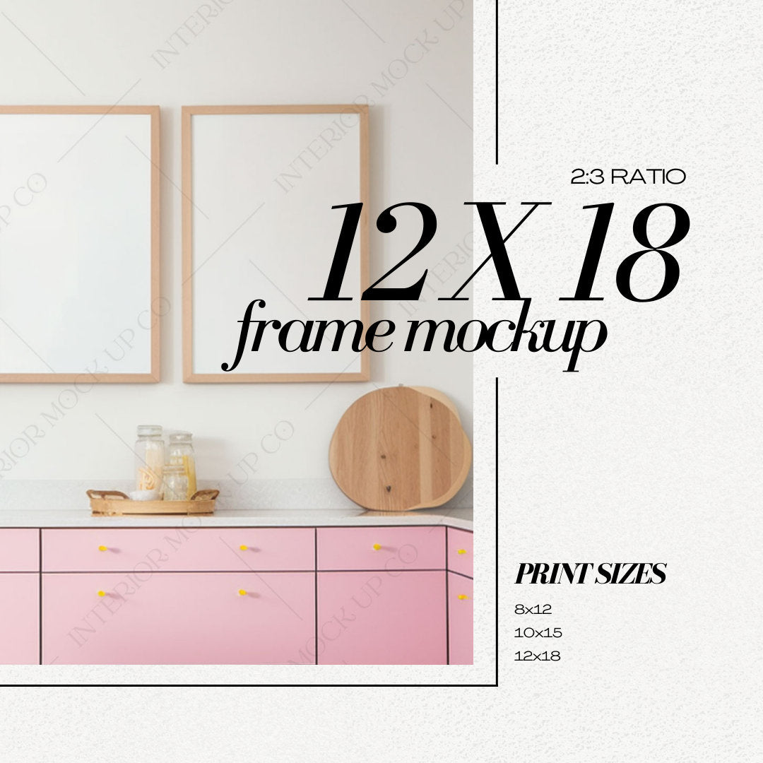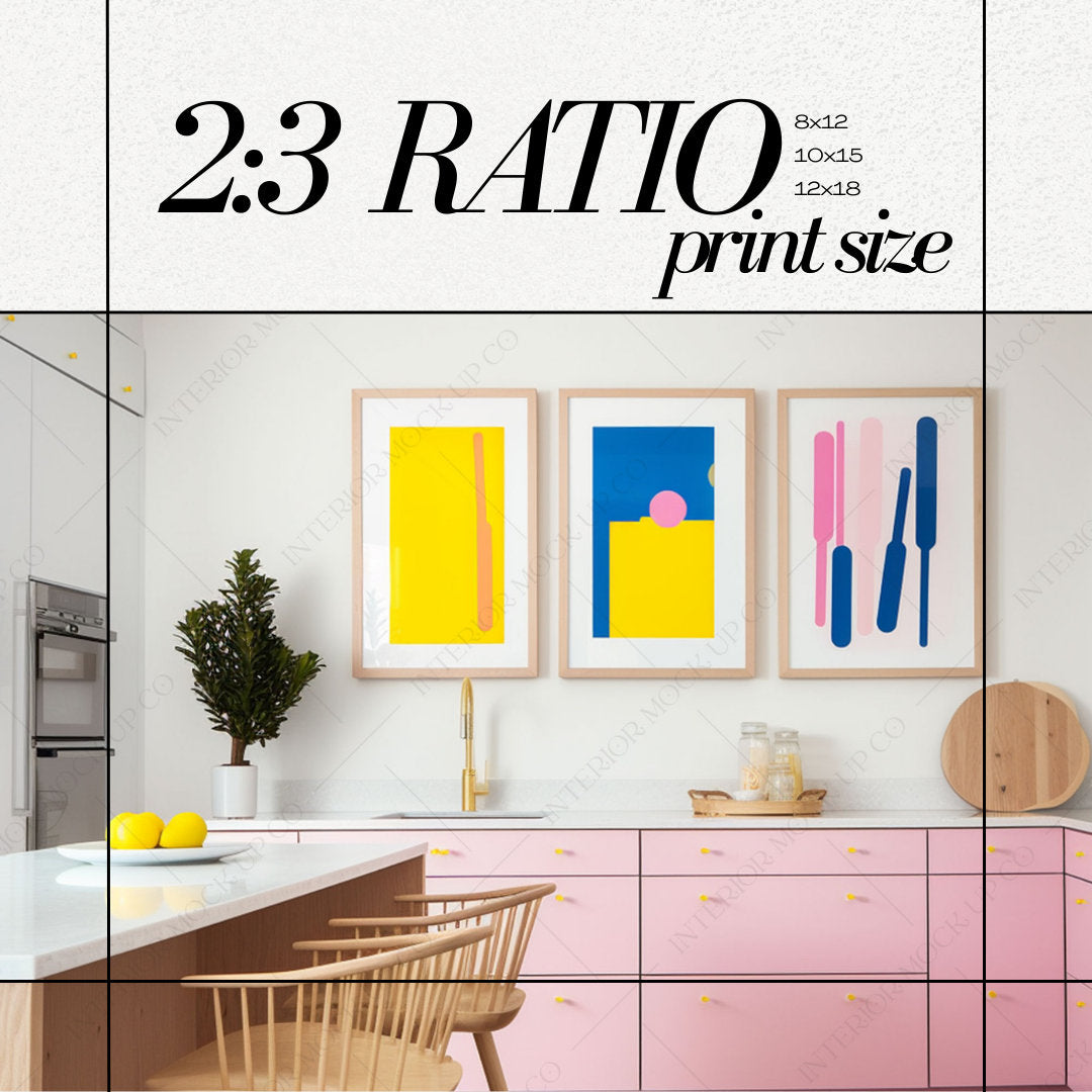 Pink Set of 3 Frames Mockup - Colorful Kitchen